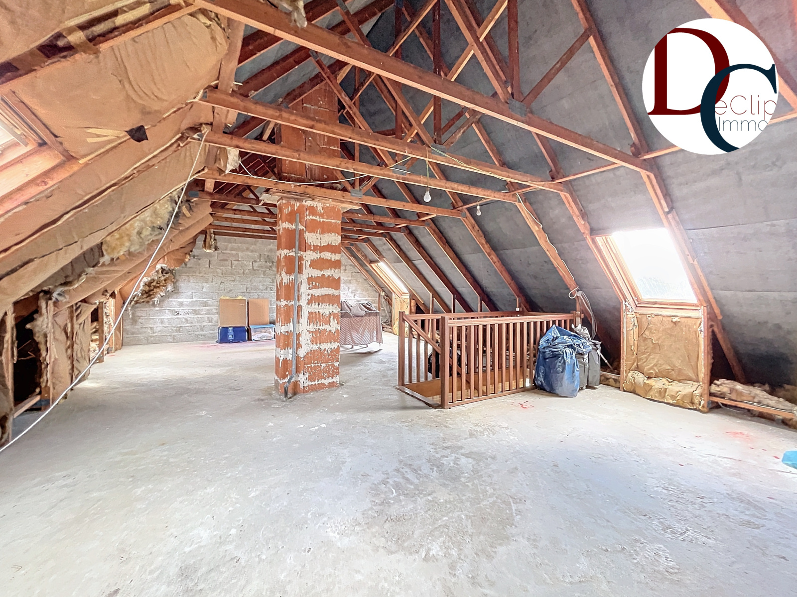 Les combles sont aujourd'hui utilisés comme grenier, ils sont facilement aménageables puisqu'ils disposent d'une dalle béton, un vrai accès par escalier et velux installés. Réel potentiel aménageable d'environ 54m² au sol necessitant une isolation. Vous pouvez créer facilement 3 autres chambres et des sanitaires. Une projection de l'audit énergétique nous permet de monter en classe énergétique D pour un budget seulement de 5427€.
