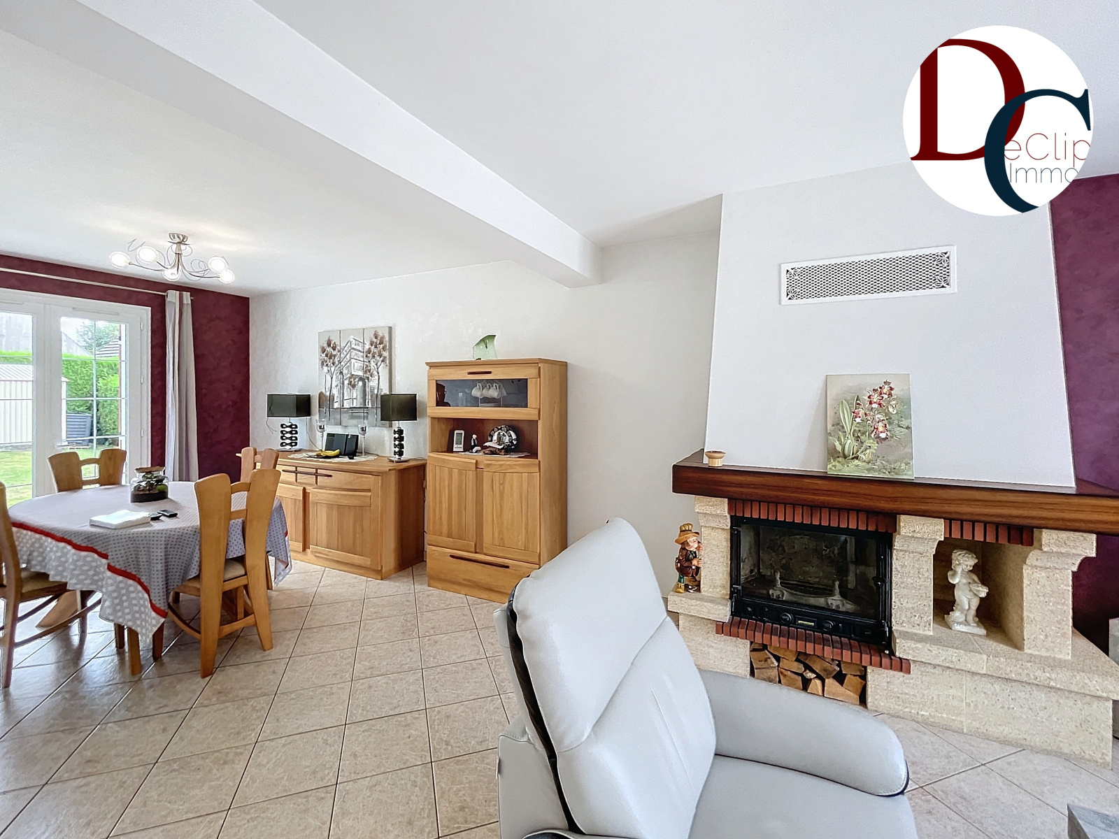 Cette maison est vivable de plain-pied et se compose d'une entrée, une cuisine aménagée donnant sur la terrasse, un double séjour avec cheminée insert avec une porte fenêtre donnant également sur la terrasse, deux chambres, un wc séparé et une salle de bains.
