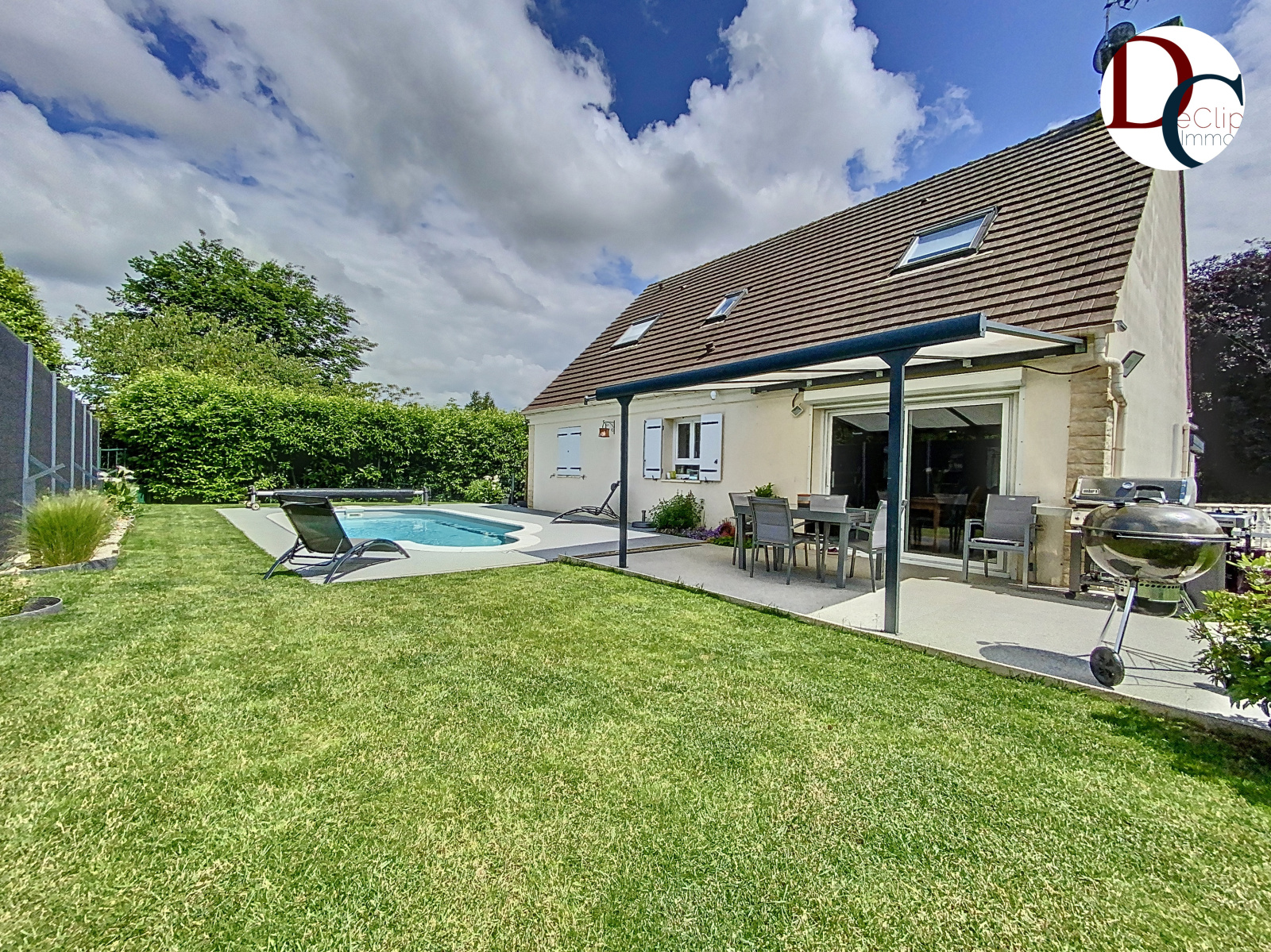 Villeneuve-sur-Verberie (60410)Exclusivité; Dans un village à proximité de Senlis avec école primaire, bus scolaire pour Senlis et commerces, nous vous proposons à la vente une agréable maison. De construction traditionnelle, cette maison moderne offre de beaux volumes pour environ 155m² habitables, une fonctionnalité, elle dispose d'une piscine chauffée (3*6m) et un sous-sol total. Elle se compose sur son rez-de-chaussée d'une entrée séparée par une verrière, une cuisine aménagée équipée ouverte sur un grand séjour avec poêle à granulés prolongée d'une véranda climatisée, un wc séparé, deux chambres dont une avec son accès à la salle de bains. A l'étage, trois chambres dont une double (idéal pour un adolescent), une salle d'eau et un wc séparé. Sous-sol total compartimenté en garage (2vl), salle de cinéma ou jeux, buanderie et dégagement pour du rangement. L'ensemble est en bon état - Un mixte de chauffage avec pompe à chaleur, poêle à granulés et électrique. Pas de vis à vis - Forêt à proximité. DPE D consommation annuelle entre 1600€ et 2240€ par an.