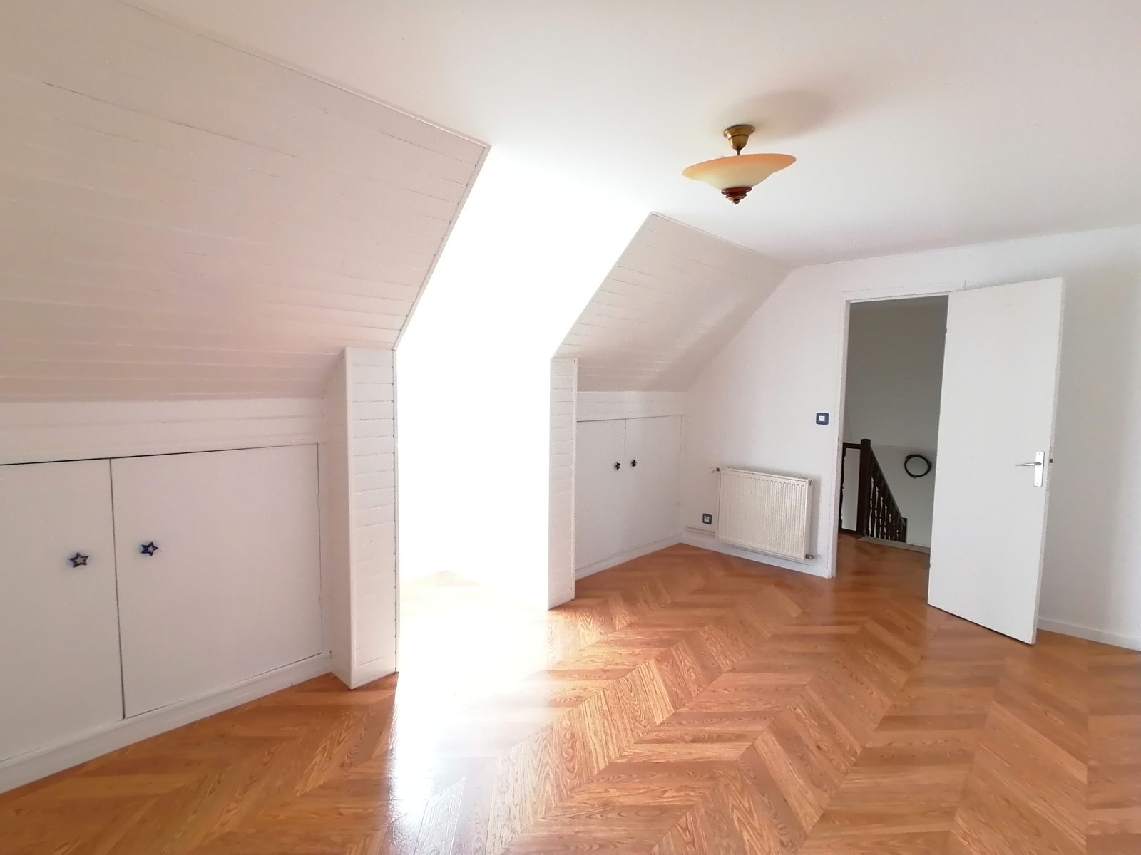 L'accès au premier étage se fait par un magnifique escalier très lumineux. Le palier dessert trois belles chambres, toutes avec des placards de rangement, un bureau ou grand dressing; un wc et une salle de bains comprenant double-vasques, douche et baignoire. Cette salle de bains est neuve et a été complètement refaite.