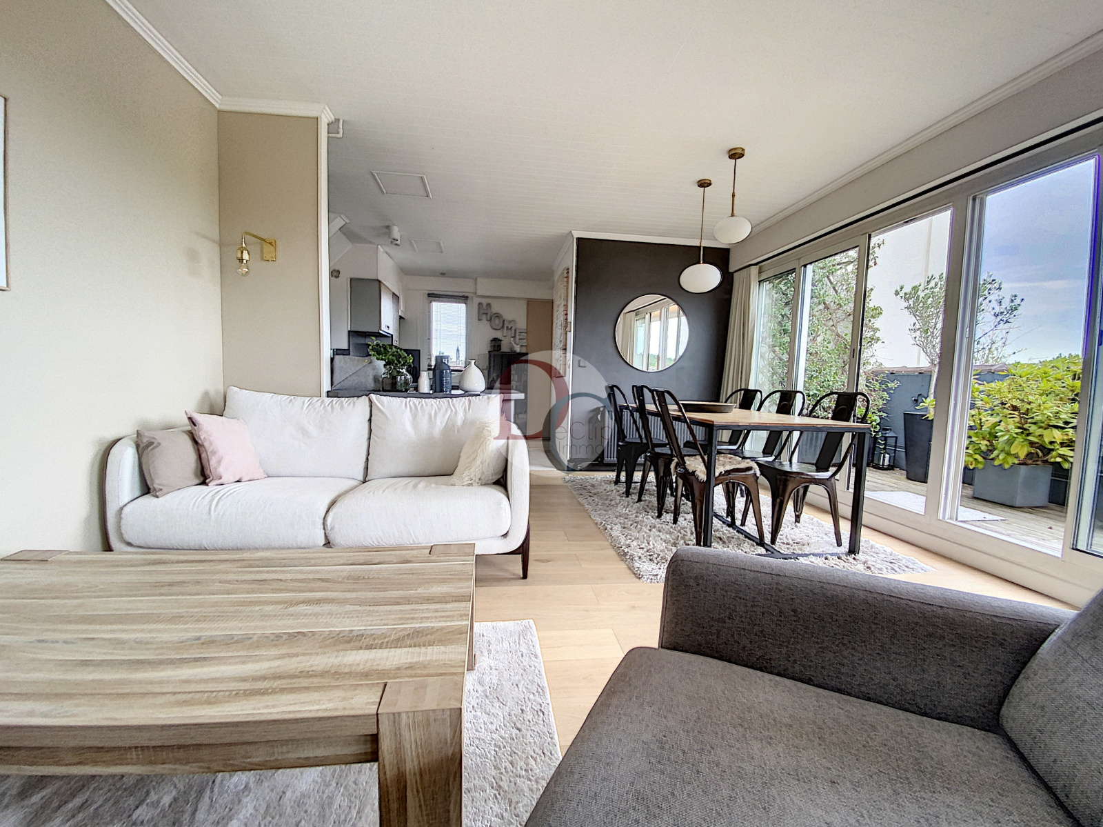 Senlis (60300)VENDU - Senlis - Très bel appartement, belle rénovation de bon standing réalisée par une architecte d'intérieur dans un état impeccable, baigné de lumière dans l'ensemble des pièces. Il se compose d'une entrée, une cuisine aménagée équipée ouverte sur l'espace repas et son salon, grandes baies vitrées avec accès terrasse et vue dégagée pour profiter d'une exposition maximale. Vous trouverez un bureau avec verrière, trois chambres avec chacune un accès terrasse, 1 wc invité, une salle d'eau avec buanderie intégré,/wc, et une salle de bains. De nombreux rangements complétent l'espace habitable. L'appartement présente aussi une cave et un grand garage. Résidence sécurisée , au calme, à 10mn de marche du centre ville de Senlis. Volets électriques - Logement réisolé - Stores sur les terrasses - pas de vis à vis.