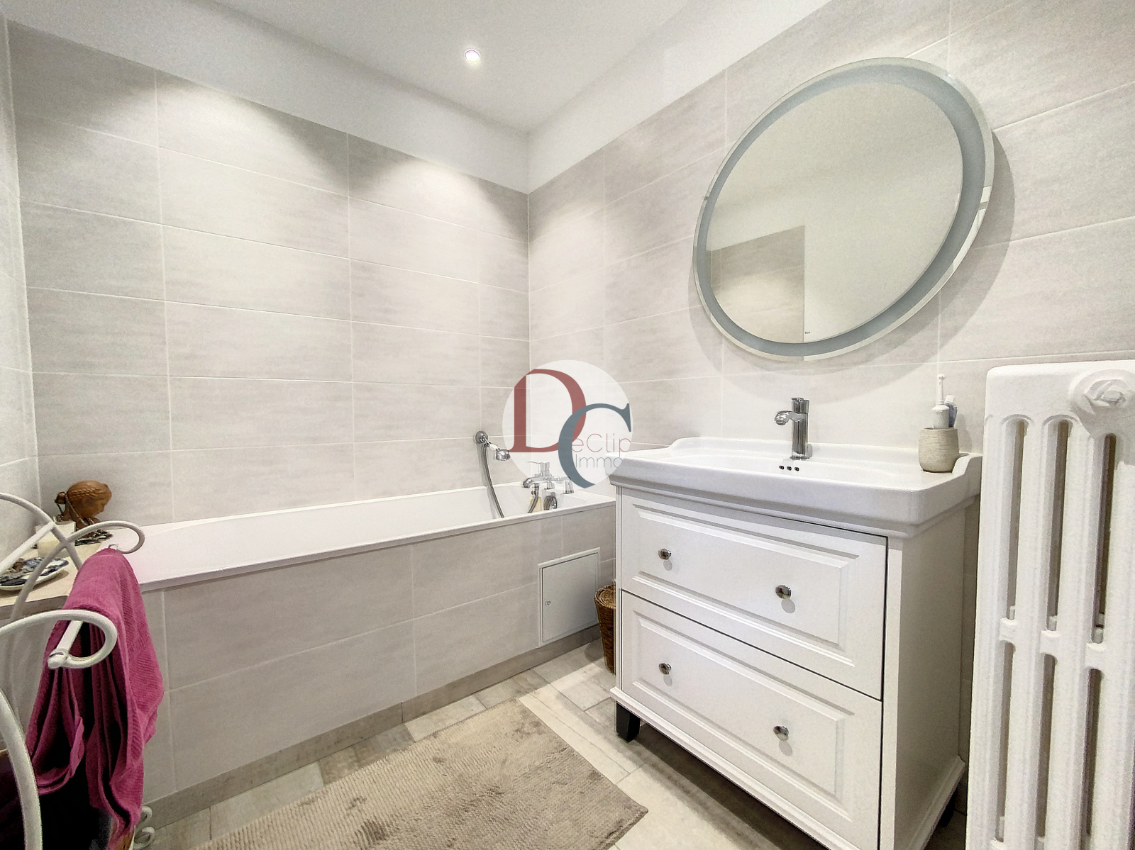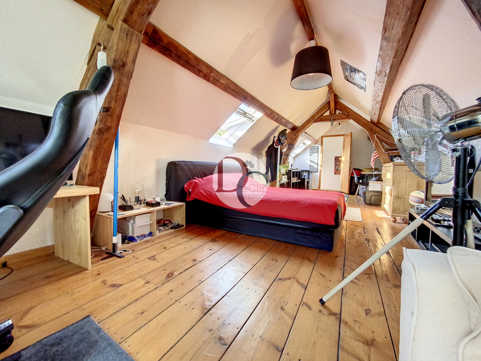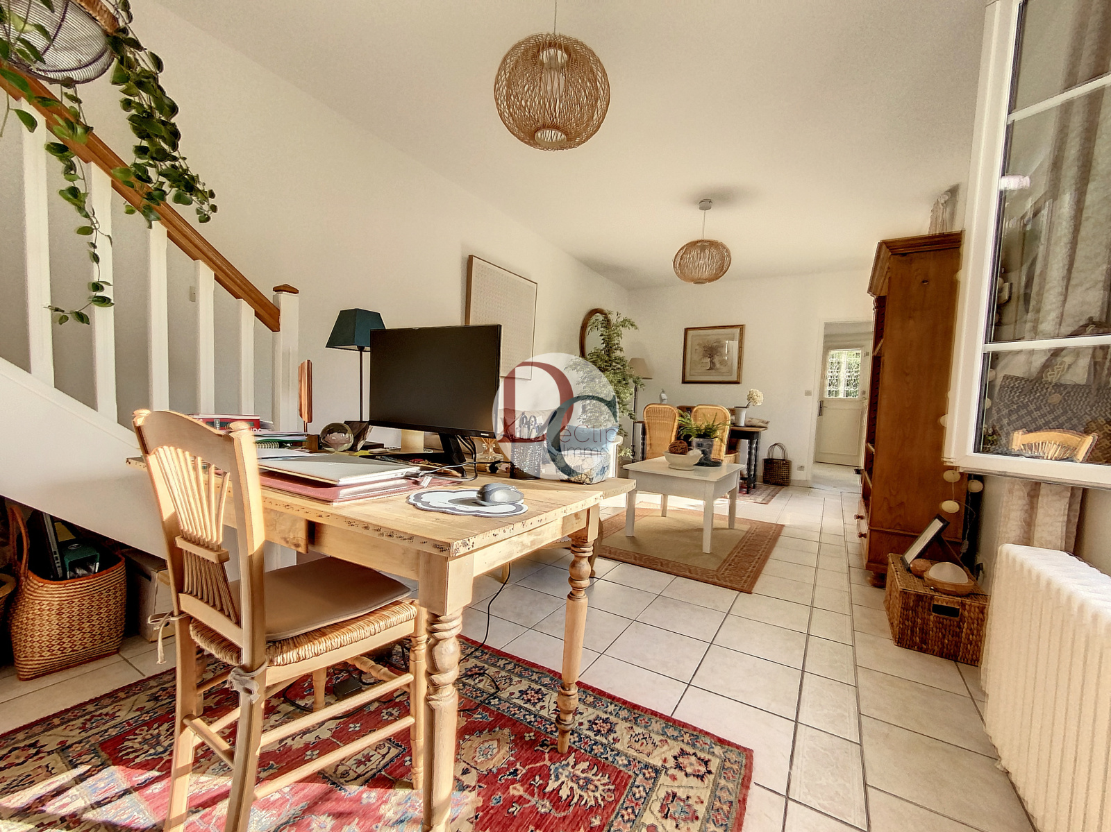 Elle se compose d'une cuisine aménagée dînatoire, une grande pièce à vie qui accueille un espace salle à manger et salon, un bureau, une belle chambre, une salle de bains récente et un wc séparé. A l'étage, un très grande chambre de 34m². La maison dispose d'un sous-sol compartimenté avec une belle cave voutée et une buanderie. Un garage attenant à la maison - Un espace vert commun.