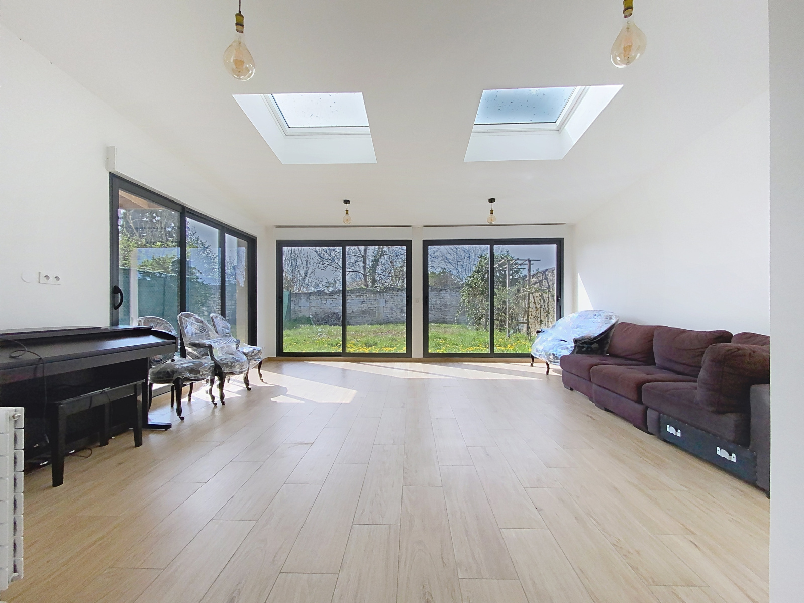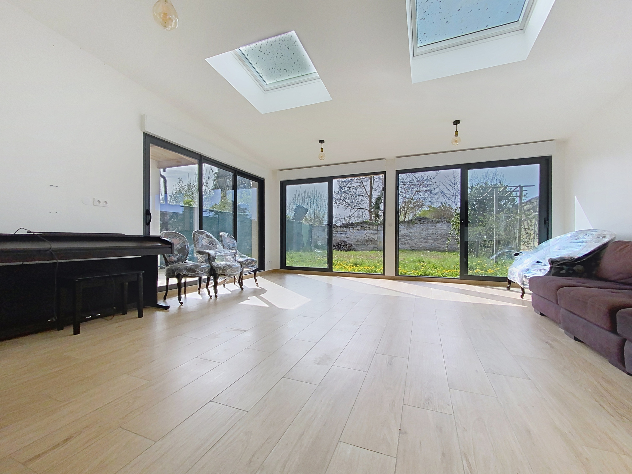 Elle présente sur son rez-de-chaussée une cuisine équipée ouverte sur un double séjour avec des baies vitrées d'environ 58m², un wc avec lave mains et un cellier.