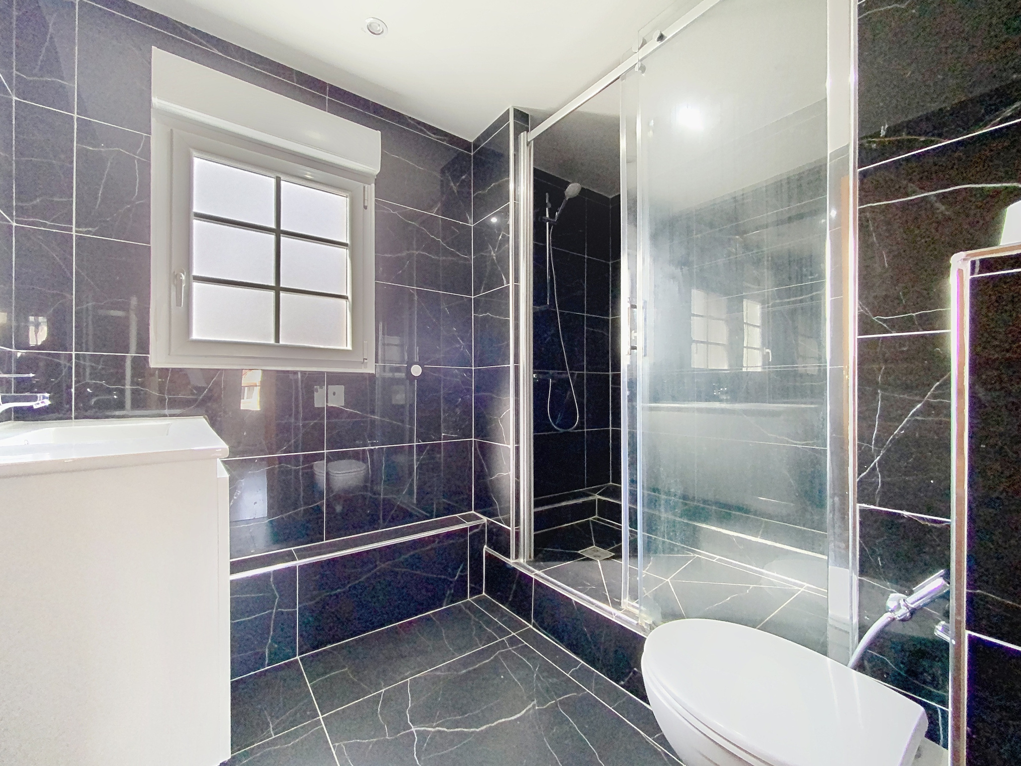 A l'étage : 3 chambres dont une suite parentale avec salle d'eau/ grande douche/wc, et une autre salle d'eau.wc.