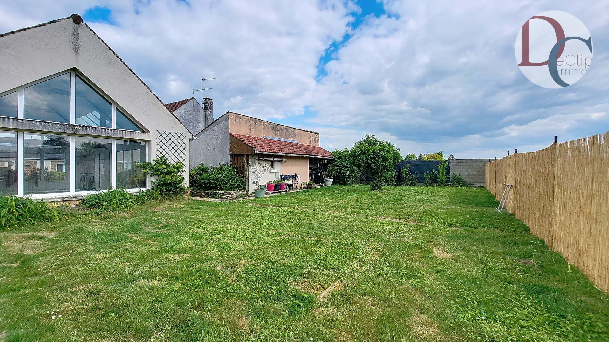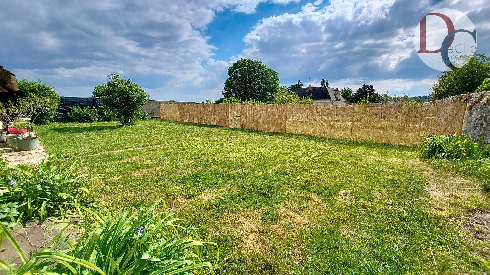 Vous poussez le portail et vous découvrez une très grande cour pavée où règnent calme et sérénité, agrémentée d'un jardin fleuri, donnant accès à la maison et à toutes ses dépendances, mais également au reste du terrain. Le terrain d'une superficie de 800m² est entouré de murs.