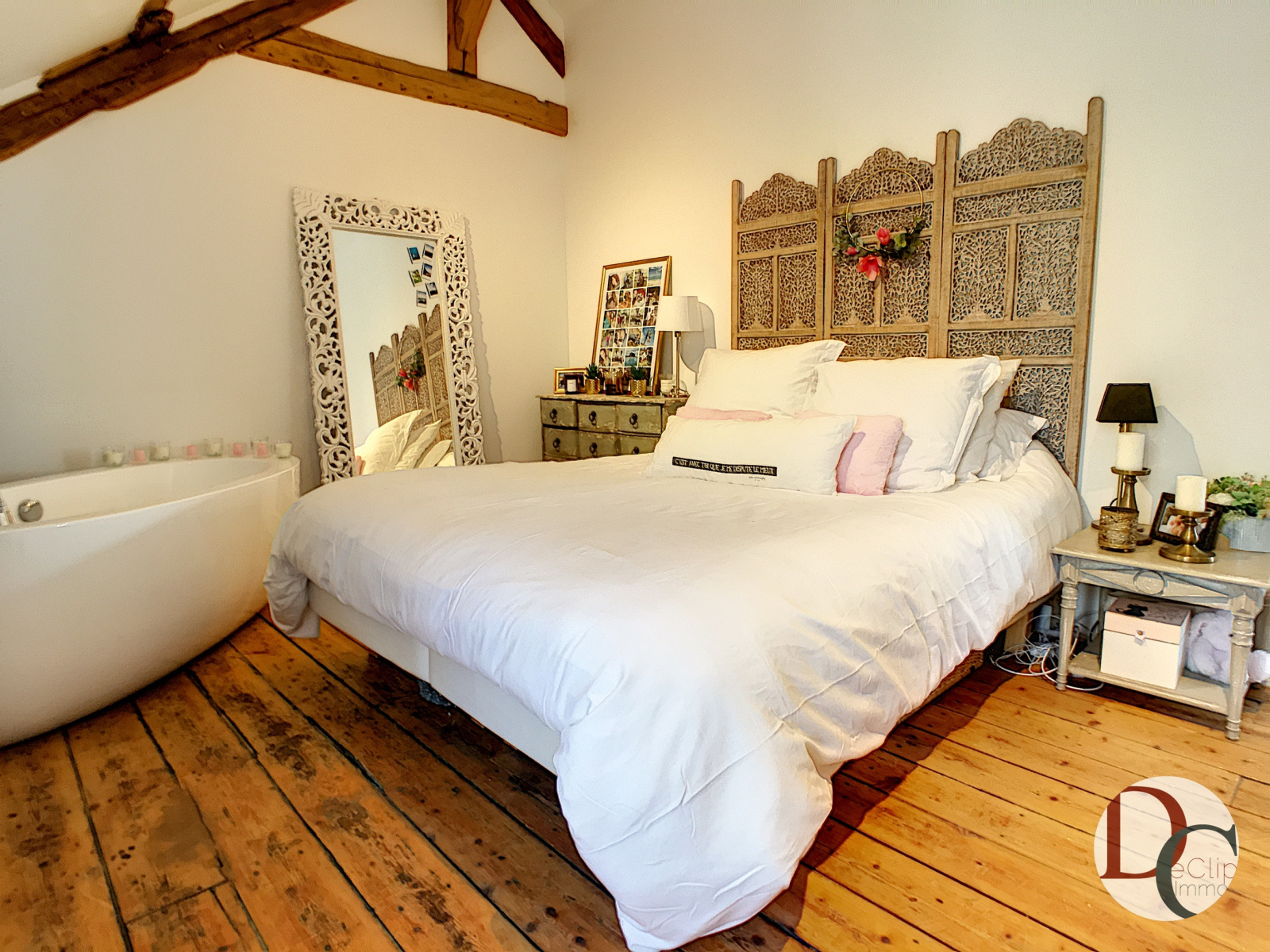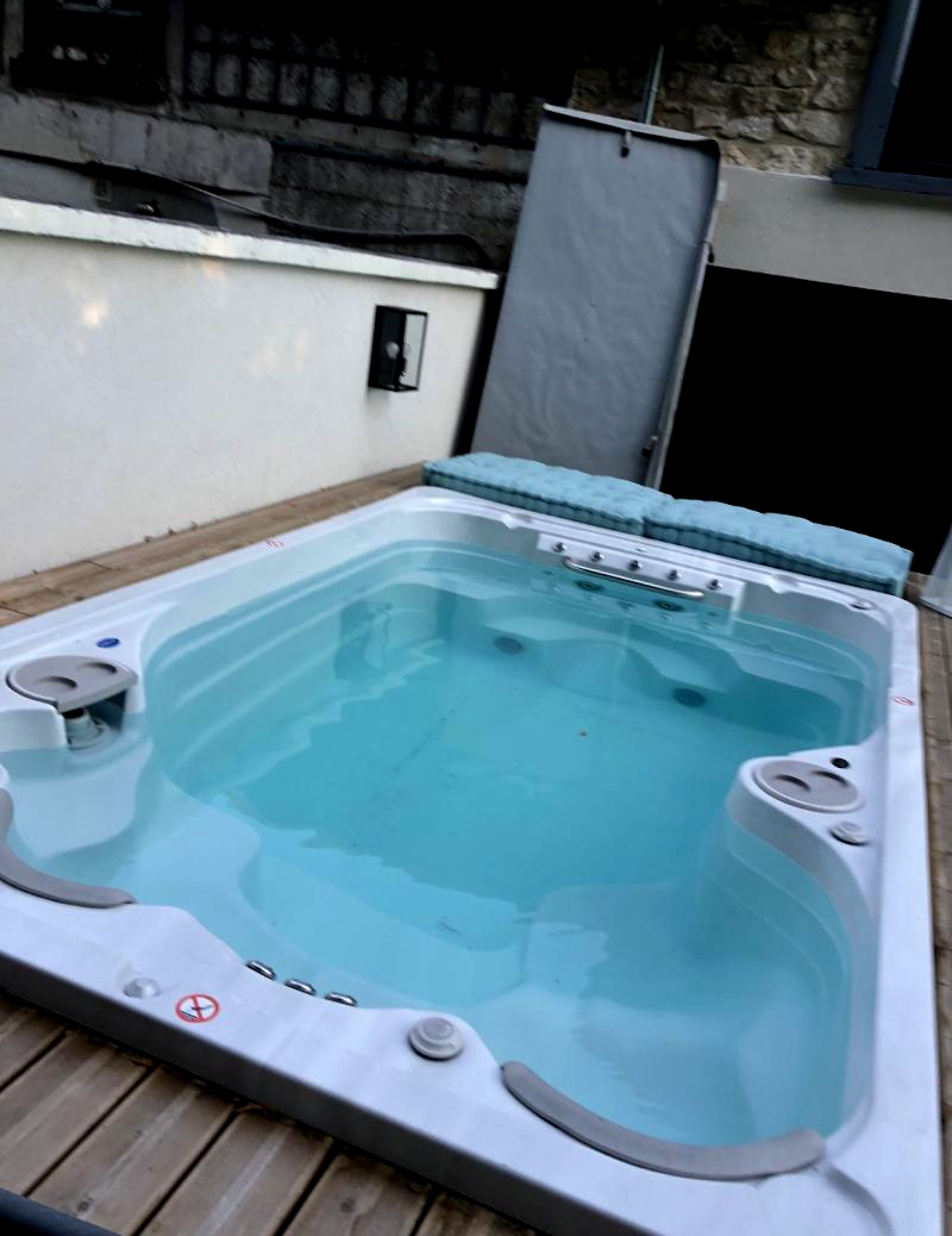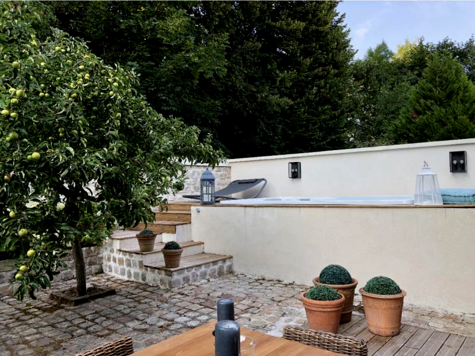 A l'étage, un couloir dessert 4 chambres (dont une avec sa baignoire), une salle d'eau avec douche à l'Italienne et un WC séparé. Charmante cour pavée clos de murs où vous profiterez d'un grand jacuzzi avec nage à contre courant.